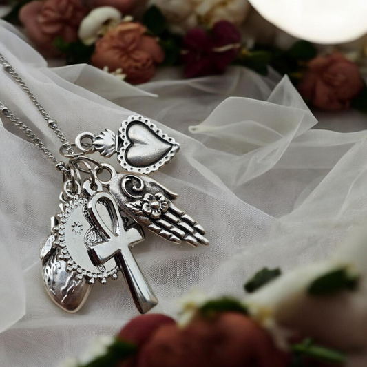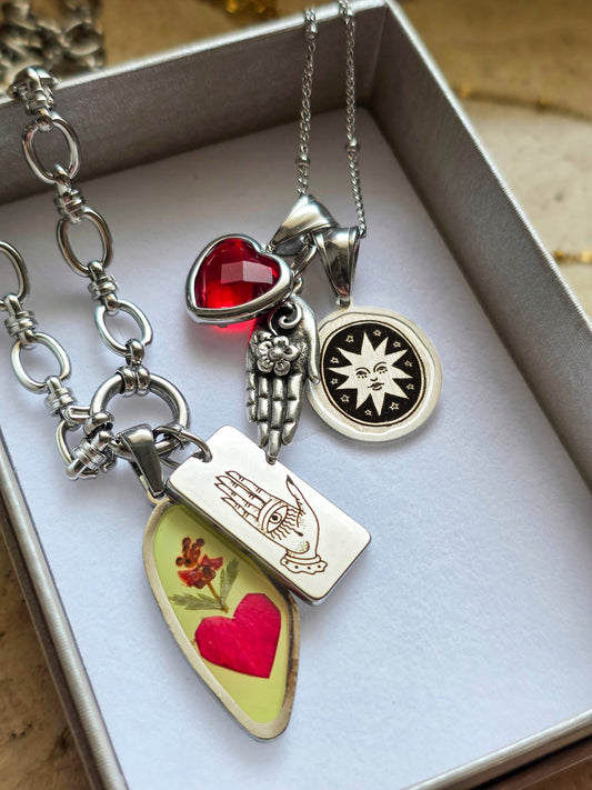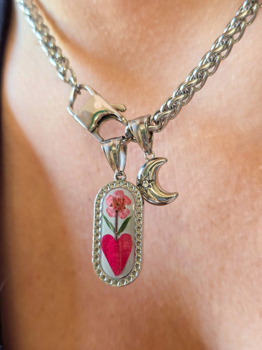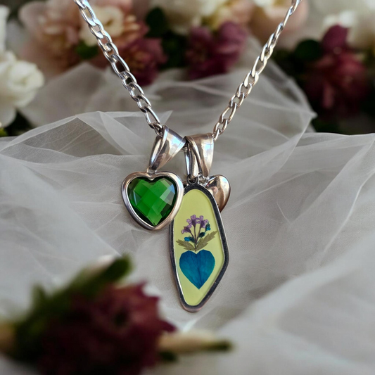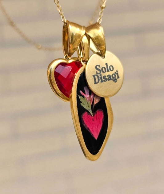 I fiori hanno sempre parlato per noi. Oggi tornano a farlo in questi ciondoli, unendo amore, devozione e protezione un cuore che racchiude un fiore, fagile, effimero, destinato a svanire..eppure qui diventa eterno.