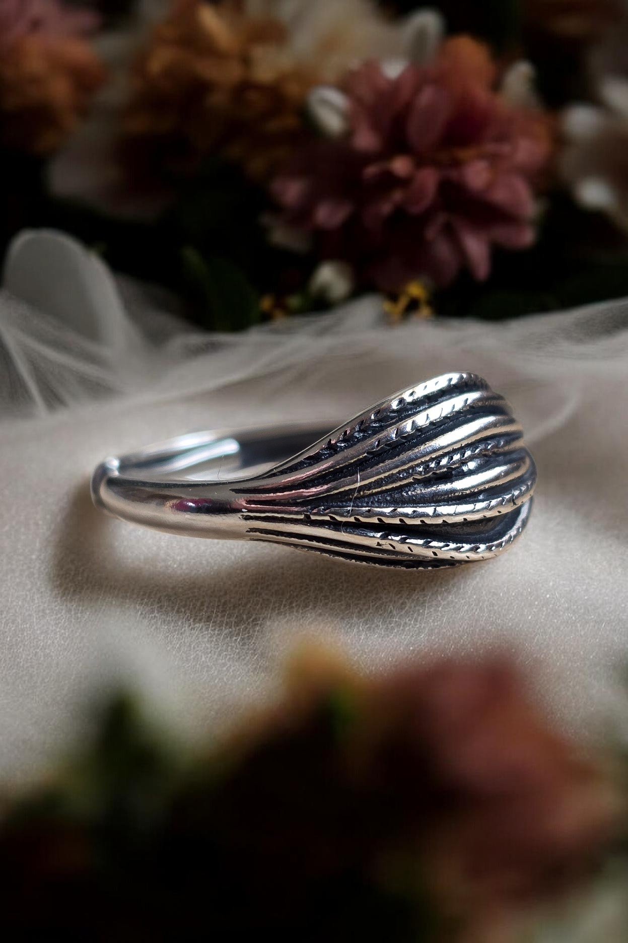 Realizzato in argento 925, con finitura leggermente ossidata per esaltare profondità e rilievi.