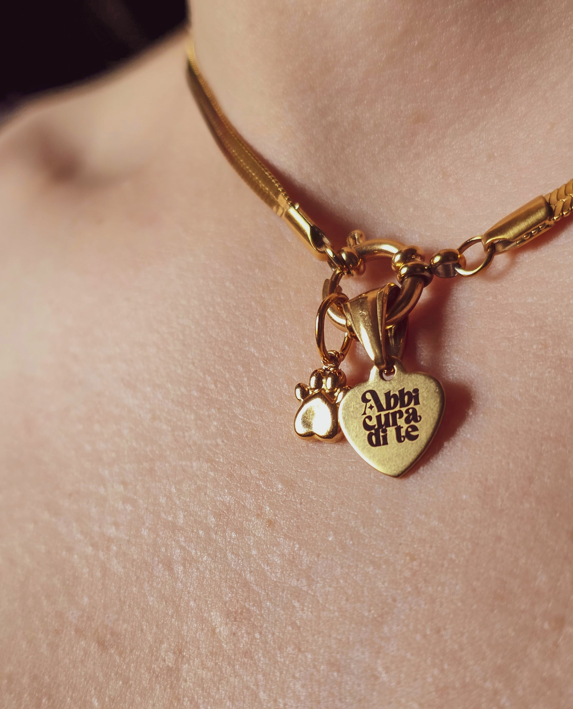 Un piccolo cuore inciso, da portare vicino alla pelle come un promemoria gentile.