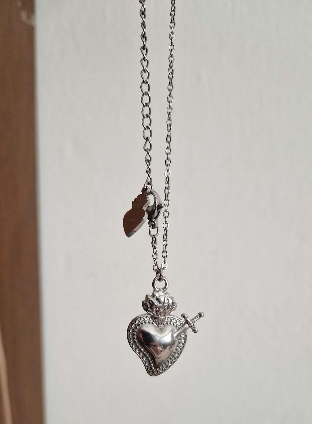 Collana in acciaio inossidabile 316L con ciondolo cuore sacro. Misura catena 45cm più estensore