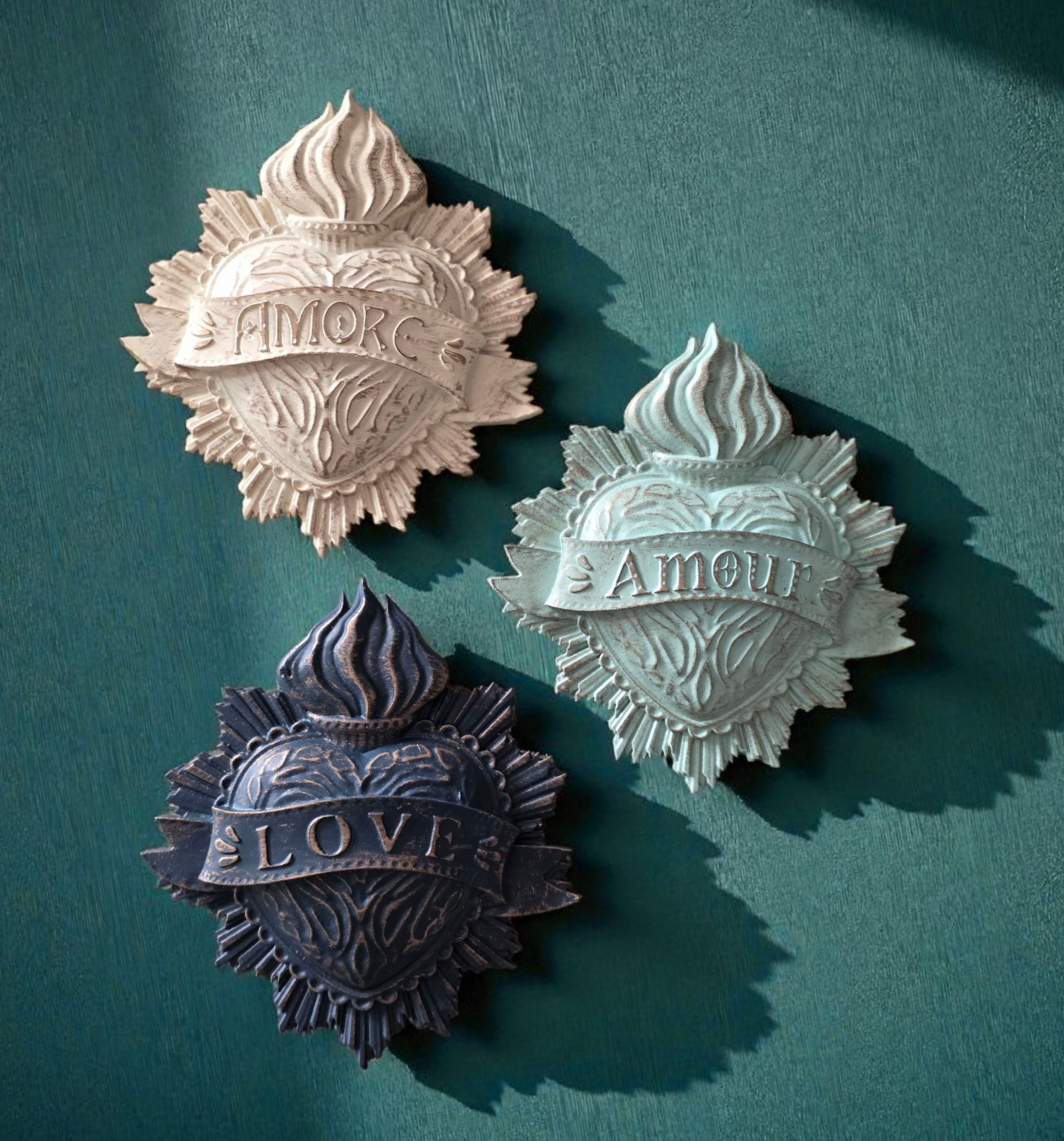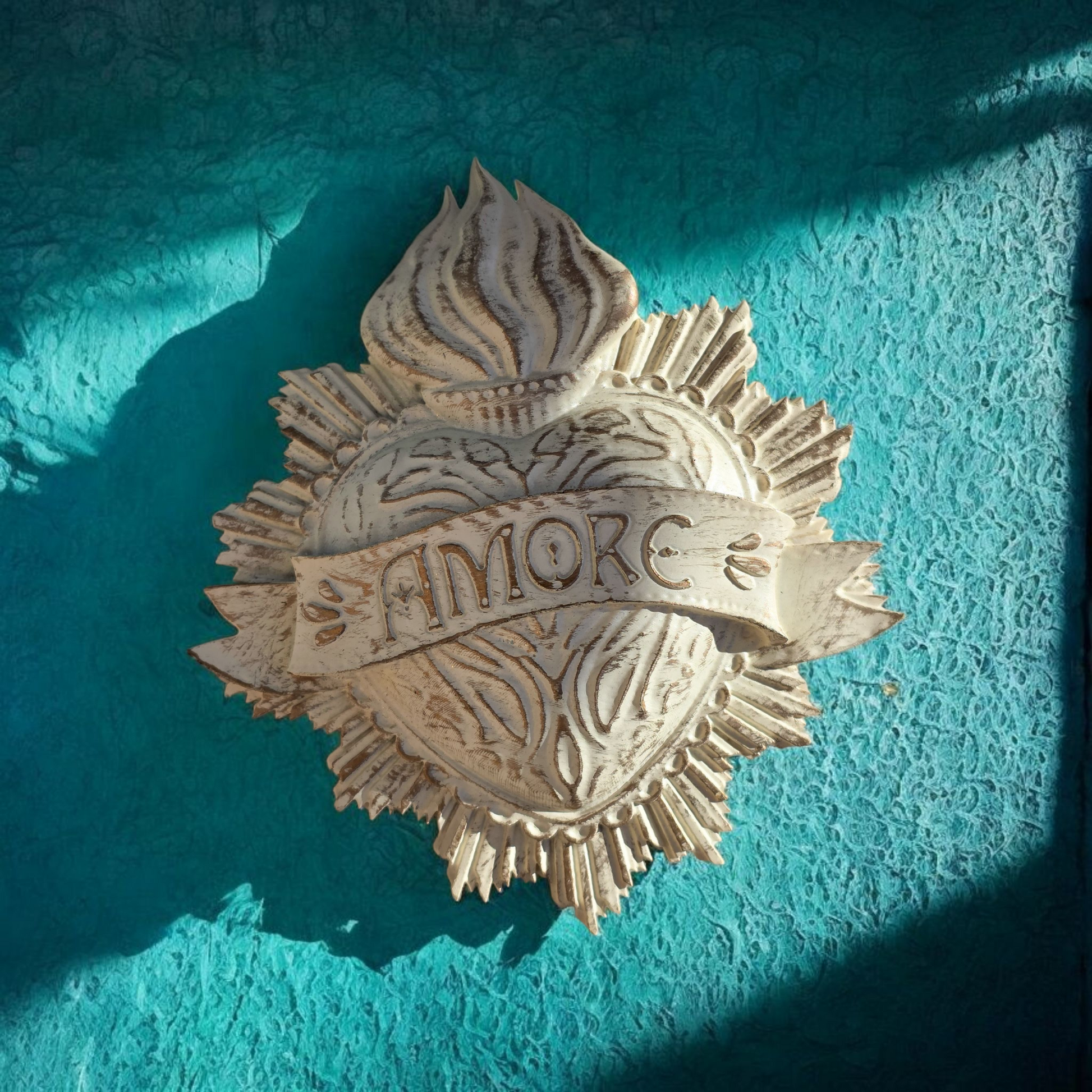 Questi cuori sacri da parete sono realizzati in gesso e selezionati con cura per arricchire la collezione Cvore Home. La lavorazione che lascia volutamente visibili piccole irregolarità, segni di mano e materia.