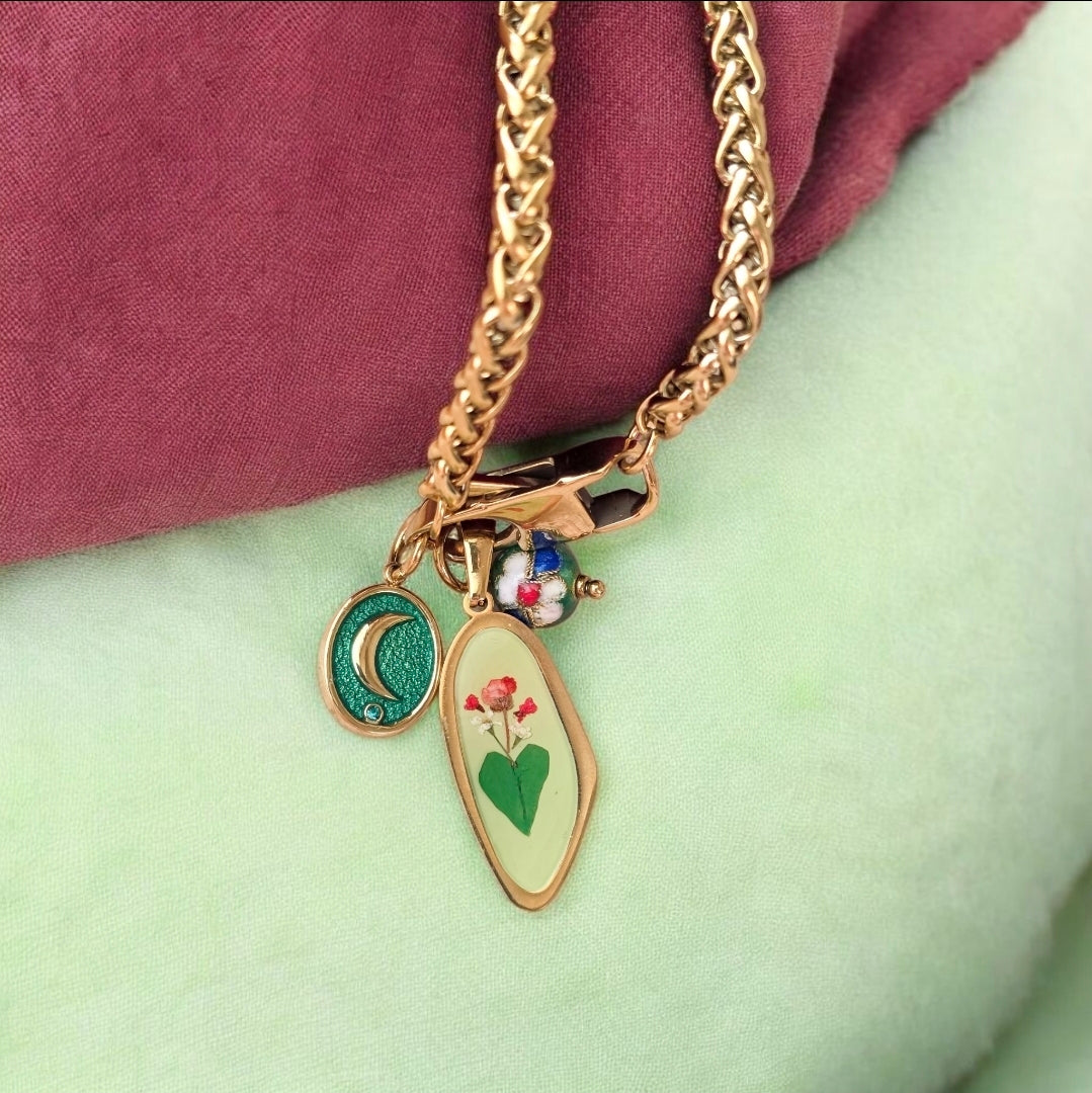 ✨ Materiali: acciaio inox 316L waterproof anallergico placcato oro 18kt, resina colata a mano, petali essiccati.