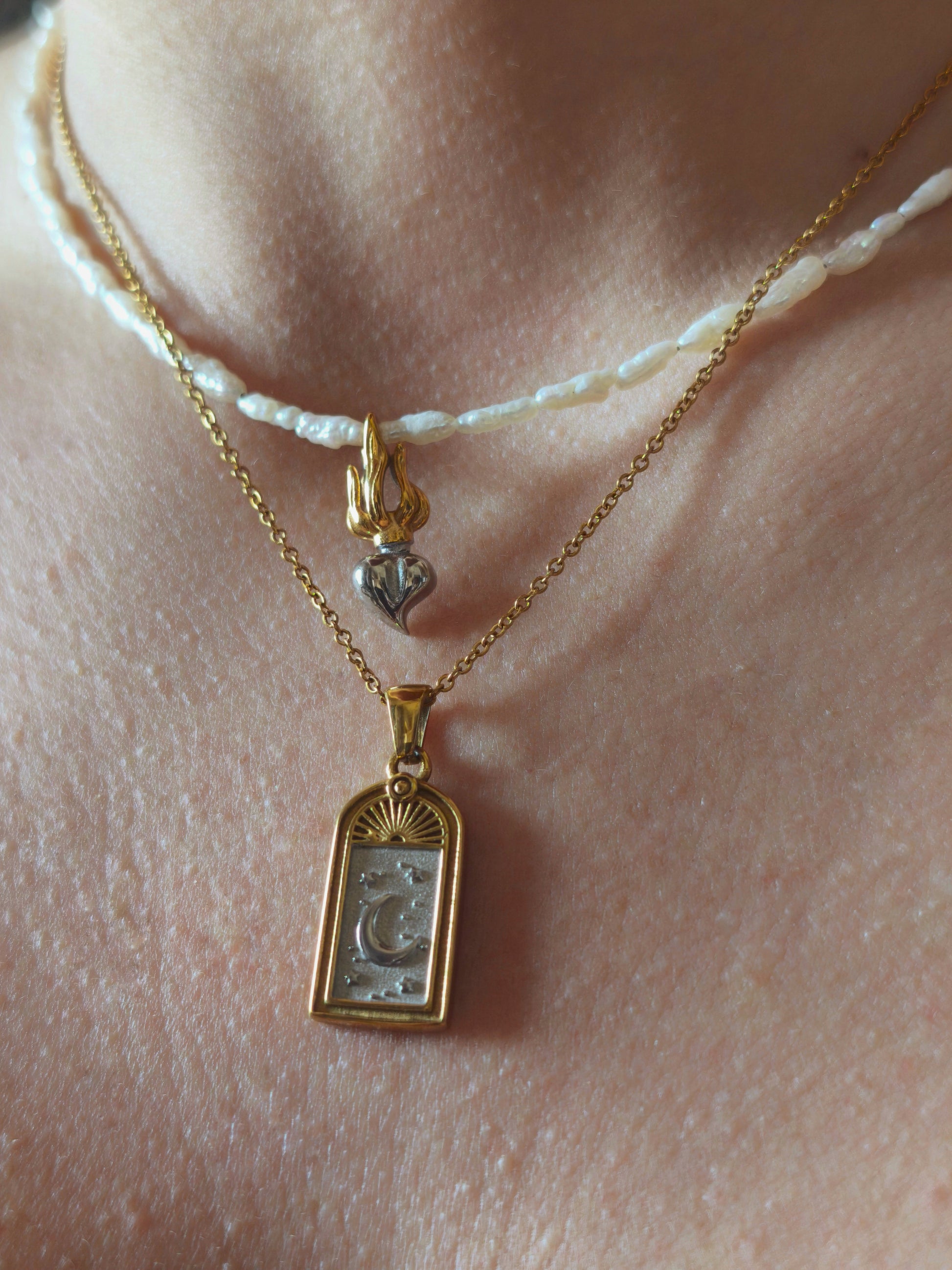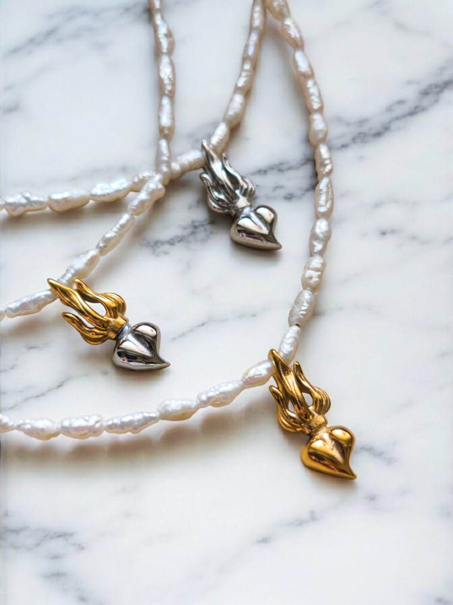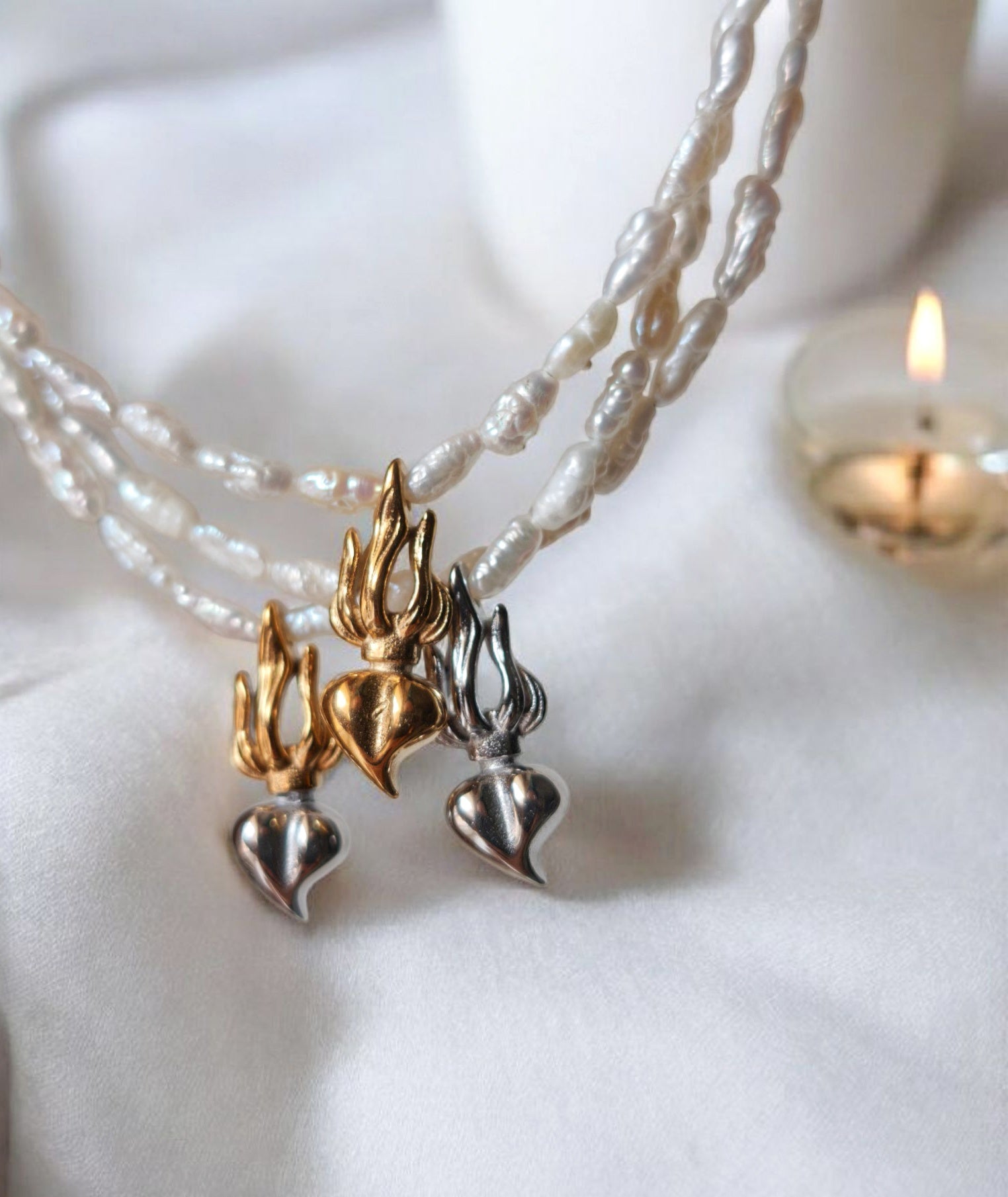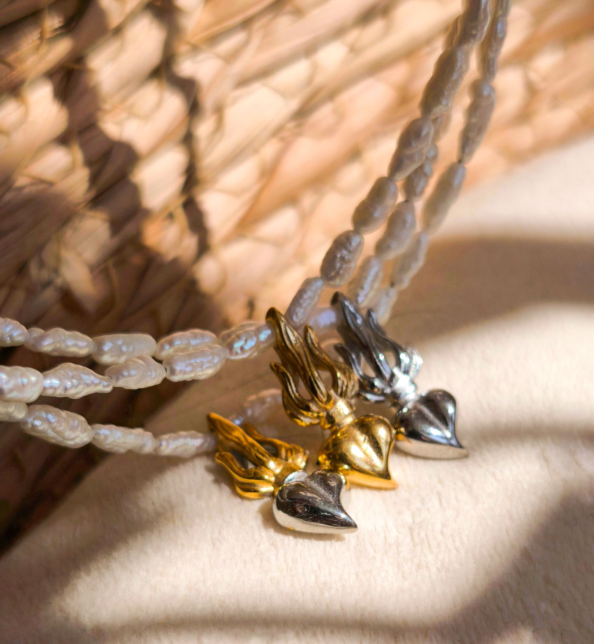 Con la Pearl Rice Edition, il Cvore Vivo raggiunge una nuova dimensione di eleganza. Il cuore sacro, simbolo di forza e delicatezza, è incastonato in una collana di perle naturali a forma di chicco di riso — un connubio tra poesia e artigianato raffinato.