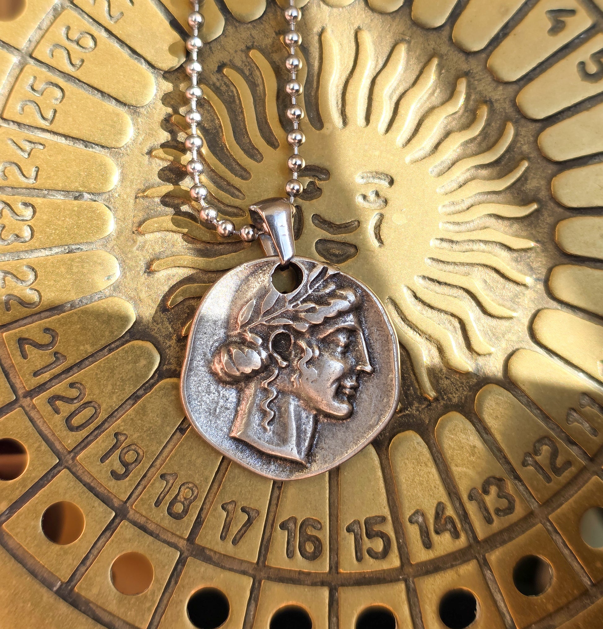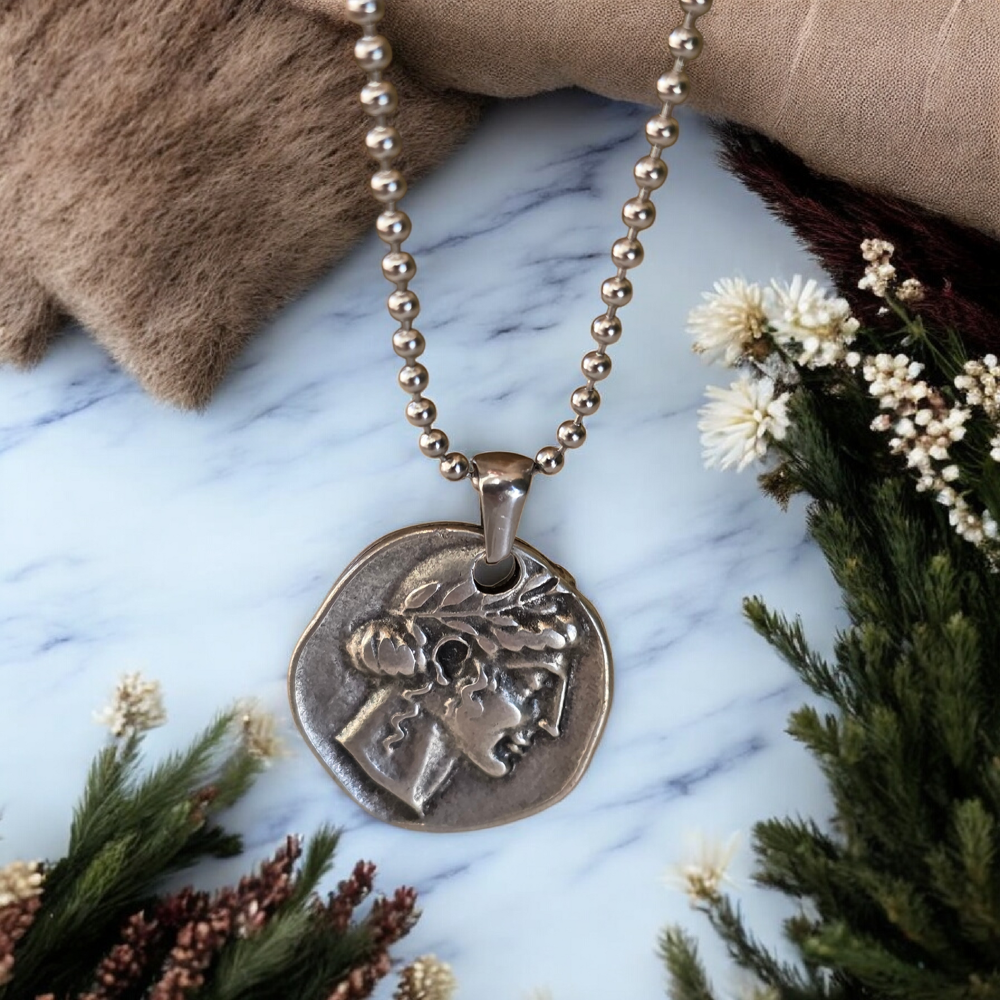 Il profilo scolpito richiama le monete antiche, dove il volto diventava simbolo di potere, destino e continuità. Indossarlo significa portare con sé una presenza silenziosa, qualcosa che ti accompagna e ti rappresenta.