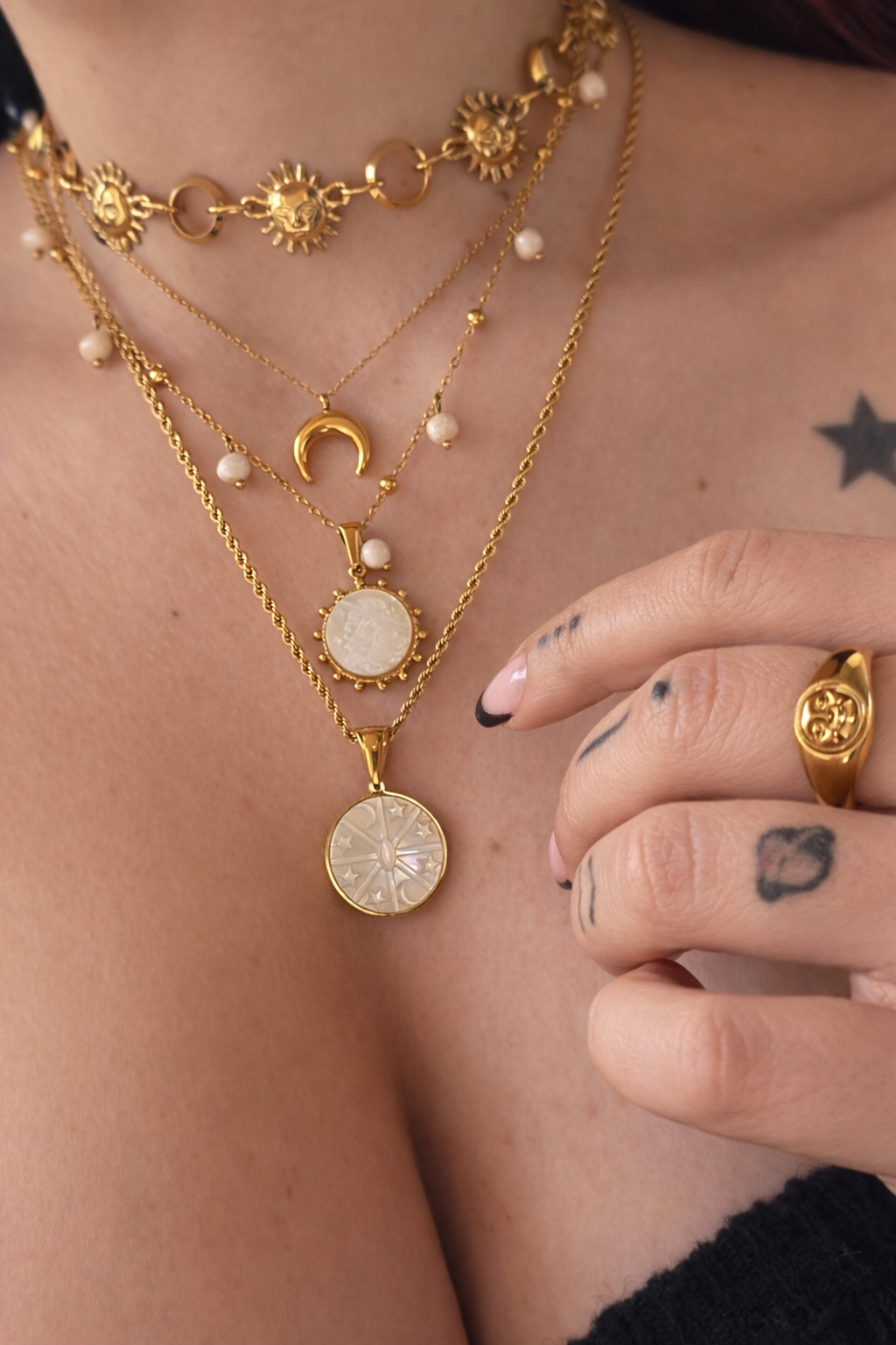 Realizzata in acciaio inossidabile 316L certificato, bagnato in oro 18 carati, con una galvanica resistente che non scolorisce, non lascia aloni sulla pelle e non provoca allergie, è pensata per essere indossata ogni giorno.
